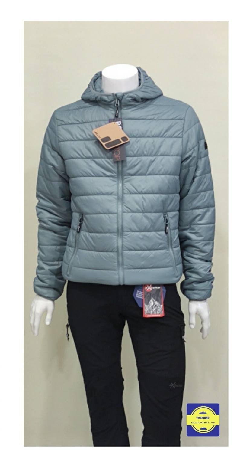 Cazadora con capucha acolchada cierre y bolsillos con cierre en cremallera.