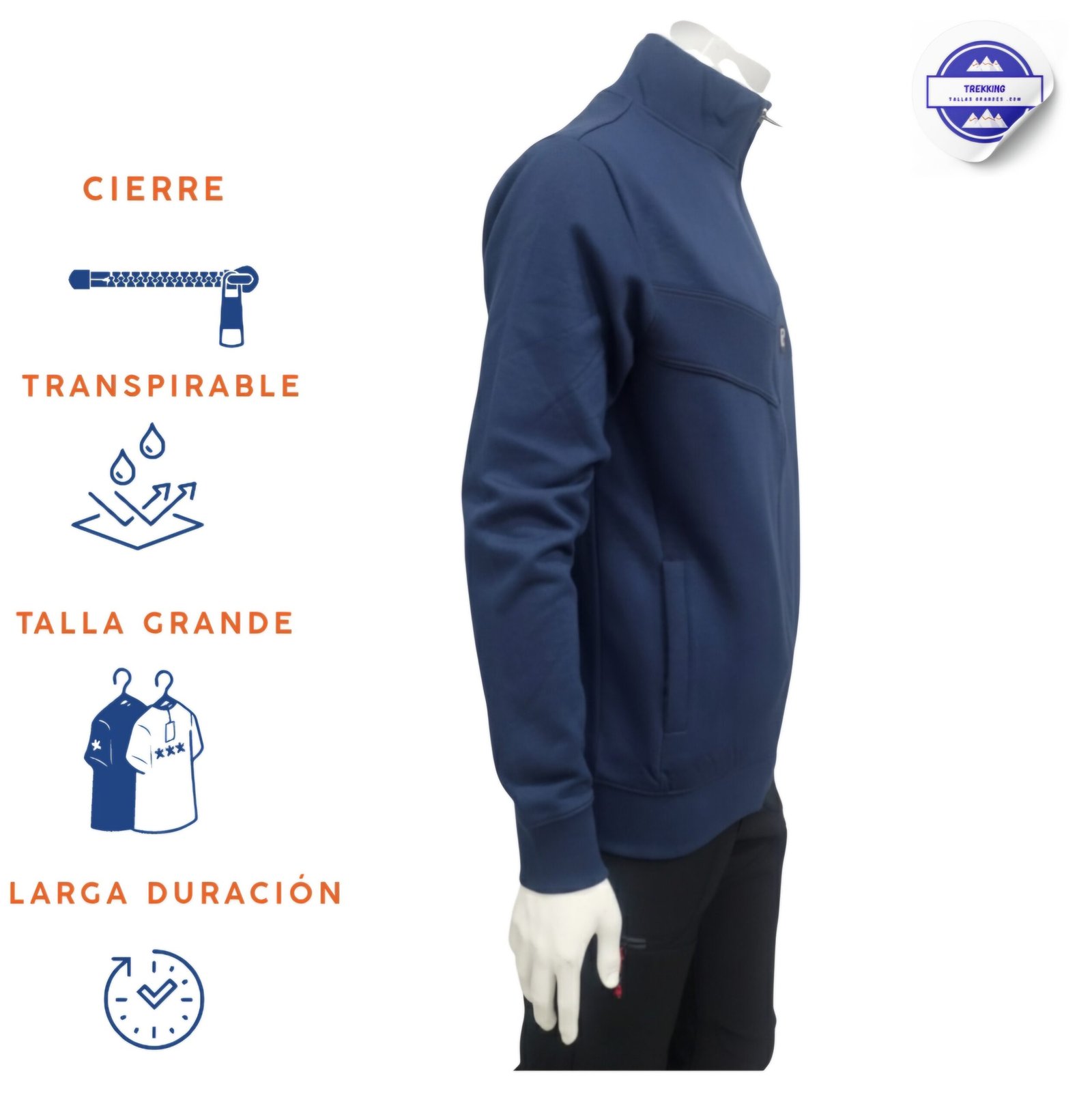 Si buscas una sudadera con cremallera en tallas grandes (3XL–5XL) y especiales (6XL–8XL), con felpa interior, bolsillos laterales con cremallera y un color azul marino que no falla, esta es tu aliada para vestir cómodo, abrigado y con estilo los 365 días.